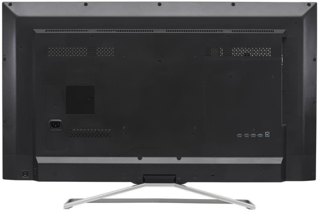 Z tyłu po lewej stronie umieszczono włącznik oraz joystik do zarządzania monitorem. Z tyłu po prawej stronie umieszczono skierowane w bok porty audio wejścia i wyjścia, HDMI, mini DisplayPort, DisplayPort i RS232. Warto dodać, że w pudle z monitorem znajdziemy praktycznie wszystko potrzebne nam do użytkowania kable. Monitor posiada również hub USB 3.0 z tyłu urządzenia. Ze względu na wielkość urządzenia ergonomia użytkowania huba jest słaba, lepszym rozwiązaniem byłoby umieszczenie portów z boku urządzenia.