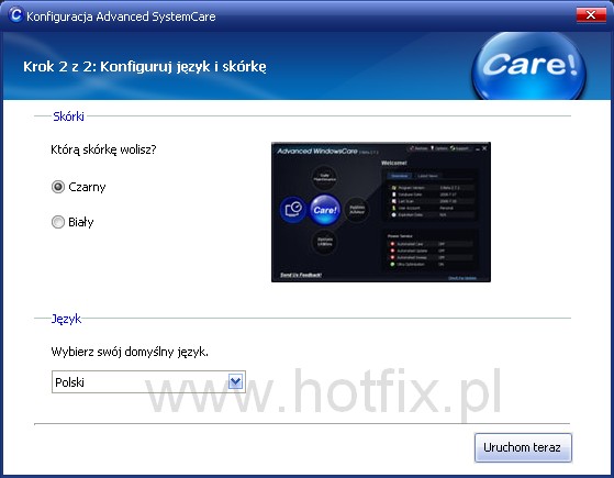 Po zainstalowaniu i uruchomieniu programu możemy wybrać skórkę oraz język.