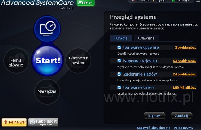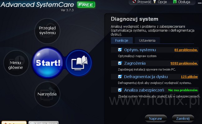 Kolejną opcją jest diagnozowanie systemu pod kątem analizy zabezpieczeń, defragmentacji dysku czy też profilaktycznemu zapobieganiu instalacji spyware na komputerze.