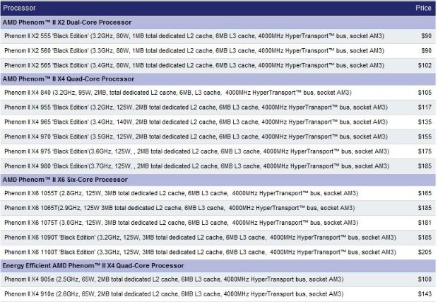 Staniały nawet najwydajniejsze modele, w tym sześciordzeniowy X6 1090T Black Edition oraz 1075T, 1065T, 1055T i najszybszy 1100T.