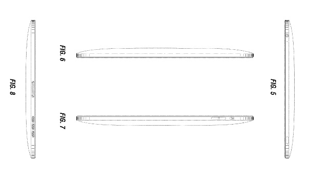 Linia ciągła we wszystkich rysunkach stanowi obrys płaskiego, zaokrąglonego urządzenia. Wszystkie inne możliwe do zidentyfikowania detale urządzenia, takie jak kratki głośników, okrągły przycisk HOME, wielkość wyświetlacza, złącze dokujące, a nawet zaokrąglony tył urządzenia nie są objęte tym patentem.