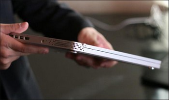 Jak twierdzi producent, grubość nowego notebooka to zaledwie 9.99 cm czyli mniej niż centymetr. Daje mu to miano najcieńszego laptopa świata. Jak można się domyślać będzie on konkurował z MacBookiem Air, lecz jego grubość to 1.94 mm.