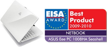 ASUS Eee PC 1008HA Seashell, który za swój smukły profil, niebywałą lekkość, jeden z największych wyświetlaczy LED spośród tego typu produktów na rynku i za imponującą efektywność w przetwarzaniu danych wyróżniony został odznaczeniem "EISA European Netbook 2009–2010 Award".