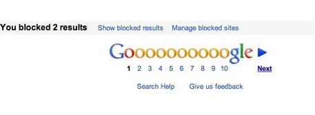 Na blogu Google Amay Champaneria i Beverly Yang Search Quality Engineers napisali: "Pewnie doświadczyłeś tego, że wyniki wyszukiwania nie spełniły Twoich oczekiwań. Być może wyniki poszukiwań nie był dobre, lecz czasem po prostu nie podobają się Tobie witryny, ponieważ zawiera obraźliwe teksty lub treści pornograficzne czy jakość strony jest niska. W obecnych czasach udostępniamy opcję blokowania określonych domen z przyszłych wyników wyszukiwań. Jeżeli wynik nie spełnia Twoich oczekiwań możesz powrócić do rezultatów wyszukiwań obok linku "Kopia" znajdzie się niedługo kolejny "Blokuj wszystkie wyniki example.com"."