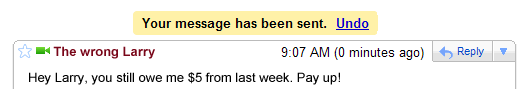 Czasami nam się zdarza popełnić fatalny błąd poprzez wysłanie wiadomości nie do tej osoby co trzeba. W takich momentach niestety już jest za późno. Przycisk Wyślij załatwił nas na Amen. Teraz Google wprowadziło do swojej usługi GMail możliwość szybkiego cofnięcia wysyłania wiadomości. Możemy tego dokonać klikając przycisk Cofnij (Undo). Opcja ta jest aktywna przez 5 sekund od momentu wysłania wiadomości. Po tym czasie niestety wiadomość pójdzie pod wskazany adres tak, więc należy się spieszyć.
