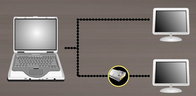 Produkt w podstawowej wersji jest przejściówką DVI -> USB. Poprzez dołączony do zestawu klasyczny adapter interfejsu DVI -> D-Sub HIS Multi-View Adapter może posłużyć nam także, gdy nasz monitor nie posiada cyfrowego wejścia DVI. Adapter podłączamy do komputera za pośrednictwem USB, zaś do przyłączamy przewód monitora. W tym momencie uzyskujemy kolejny niezależny wyświetlacz. Cały zabieg odbywa się w ramach Plug&Display, także podczas podłączania czy odłączania monitora nie musimy wyłączać komputera.