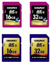 KINGMAX wprowadza na rynek nowe karty pamięci o dużej prędkości 32GB Class 10 SDHC oraz karty odporne na działanie wody Waterproof SDHC. Dzięki pojemności aż 32GB oraz prędkości zapisu powyżej 20MB/s użytkownicy nie muszą się martwić, że ich aparat czegoś nie da rady zapisać najcenniejszych chwil. Z kolei zapewniona wodoodporność IPX8 w kartach Waterproof przyda się szczególnie specjalistom, aby zapobiec uszkodzeniu lub utracie danych.