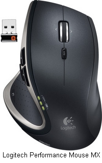 Logitech Performance Mouse MX, Logitech Anywhere Mouse MX charakteryzują się również znaną funkcją błyskawicznego przewijania rolką dokumentów dużych rozmiarów (Hyper Fast Scrolling). Funkcję bezprzewodowej komunikacji Logitech Advanced 2,4GHz umożliwia mikroodbiornik, który podłączamy do wolnego portu USB w naszym komputerze. Jest on tak mały, że w przypadku laptopa, po zakończeniu z nim pracy nie musimy go odłączać. Nowe myszy od Logitech posiadają gniazda żeńskie mini-USB, poprzez które możemy ładować ich akumulatorki, za pomocą przewodu USB, z poziomu komputera. Jak na urządzenia peryferyjne od Logitech przystało, myszki wykonano z najwyższą precyzją. Ich wygląd zewnętrzny cieszy oczy i jednocześnie potwierdza najwyższą klasę pod względem technicznym.