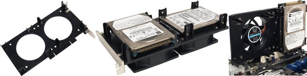 Japońska firma Scythe zaprezentowała dość oryginalny przedmiot, jakim jest SLOT RAFTER. Jest to swego rodzaju "półka", którą podłączamy do wolnego złącza PCI. Wbrew pierwszym skojarzeniom produkt nie jest zasilany ze złącza PCI. Na owej półce znajdują się dwie sekcje, które umożliwiają montaż dwóch 80 milimetrowych wentylatorów (od spodu) oraz montaż czterech 2,5 calowych dysków twardych HDD bądź SSD albo dwóch konwencjonalnych HDD, przy czym jedna sekcja pozwala na usytuowanie dysków równolegle względem płyty głównej (jeden nad drugim przy dyskach 2,5"), zaś druga sekcja prostopadle względem płyty (jeden nad drugim przy dyskach 2,5"). W takim zestawieniu wentylatory efektywnie schładzają nasze dyski twarde. Scythe SLOT RAFTER może nam posłużyć również jedynie jako uchwyt na same wentylatory. W ten sposób umiejscowienie produktu, np. pod kartą graficzną może być idealnym rozwiązaniem dla użytkowników mających problemy ze zbyt dużą temperaturą układu graficznego. Możliwe jest również zestawienie jednego dysku twardego oraz jednego wentylatora na drugiej sekcji, w tym momencie ze SLOT RAFTER-a od Scythe płynie podwójna korzyść.