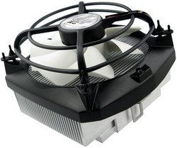Szwajcarski gigant specjalizujący się głównie w produkcji sprzętu chłodzącego - firma Arctic Cooling zaprezentował nowy cooler przystosowany do chłodzenia procesorów AMD - Arctic Cooling Alpine 64 Pro. Cooler kompatybilny jest z podstawkami: socket AM3, AM2+, AM2 oraz 939. Cechą charakterystyczną nowego produktu jest 92 milimetrowy siedmiołopatkowy wirnik o prędkości obrotowej od 500 do 2000 obr./minutę, gdzie prędkość odpowiednio dostosowywana jest automatycznie poprzez układ Pulse Width Modulation (PWM) do aktualnego obciążenia procesora. Wirnik przymocowany jest do ramy wentylatora za pomocą gumowych "amortyzatorków", które efektywnie tłumią drgania powstające podczas pracy wirnika. Wentylator spoczywa na dwudziestosiedmiofinowym aluminiowym radiatorze. Wydajność w odprowadzaniu ciepła przez cooler wyliczono na 90W, co jest naprawdę dobrym wynikiem. Alpine 64 Pro pochwalić się może przepływem powietrza na poziomie 62.2 m³/godzinę. Kolejną z zalet produktu jest jego bezproblemowy montaż na płycie głównej, który sprowadza się do zaczepienia dwóch zaczepów do uchwytów podstawki procesora.