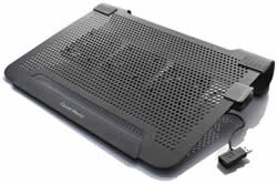 Tajwańska korporacja Cooler Master wprowadziła rynek podstawkę chłodząca Cooler Master NotePal U3 dla komputerów przenośnych kompatybilną z modelami o maksymalnej przekątnej 19 cali. Produkt jest niezwykle solidny, bo ważący aż 1,04 kg, a to dlatego, że w całości skonstruowany jest z aluminiowej blachy o grubości 4 milimetrów, którą zagięto na jednym z końców, co nadaje podstawce stały ergonomiczny kąt nachylenia. Na całej powierzchni oparcia notebooka wykonano otwory zapewniające optymalną wentylację, której proces napędzają trzy dołączone do zestawu wentylatory o regulowanej manualnie przez użytkownika prędkości obrotowej. [Kliknij, aby przeczytać całość] |