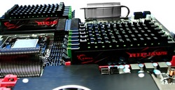 Firma G.Skill, która udowodniła nie raz, że należy ją wymieniać wśród liderów na rynku pamięci RAM zaprezentowała dziś niebywale potężny zestaw pamięci RAM z przedziału Ultra-High Performance zgodnych ze standardem DDR3. Komplet Ripjaws, który liczy aż dwanaście modułów o pojemności 4GB każdy przeznaczony jest tylko i wyłącznie dla dwuprocesorowej płyty głównej EVGA Super Record 2 (SR-2), która jest podstawą superwydajnych stacji roboczych. Płyta bazuje na mikroukładzie Intel 5520 z mostkiem południowym ICH10R i przystosowana jest do przyjęcia dwóch fizycznych procesorów z rodziny Intel Xeon 5500/5600 na podstawkę LGA 1366. W przypadku nowego zestawu pamięci RAM od G.Skill każdy z procesorów współpracować będzie z 24GB (6x 4GB) pamięci w trybie Dual-Channel.