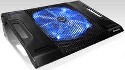 Korporacja Thermaltake Technology rozpoczęła sprzedaż kolejnej podstawki chłodzącej dla komputerów przenośnych z serii Massive23. Po ciekawych odsłonach, jakimi są Massive23 CS oraz Massive23 ST przyszła kolej na wersję z dopiskiem LX. Jest do zdecydowanie najwszechstronniejsza propozycja serii. Cooler Massive23 LX wykonany jest w większości z aluminium, ale również z części plastikowych. Jednym z istotniejszych elementów konstrukcji jest stalowa siatka, która zapewnia wysoki przepływ powietrza tłoczonego przez ogromny 230 milimetrowy wolnoobrotowy wentylator. Powierzchnia oparcia komputera, która przyjmuje jednostkę o maksymalnej przekątnej 17 cali pokryta jest elementami z tworzywa gumowego, co zapobiega zsuwaniu się laptopa. [Kliknij, aby przeczytać całość] |