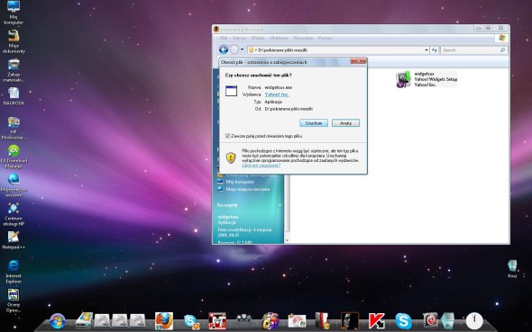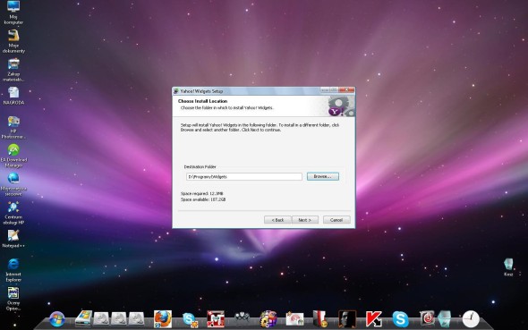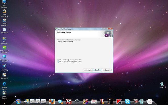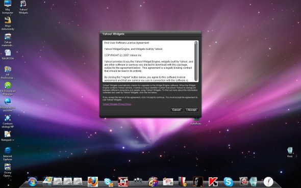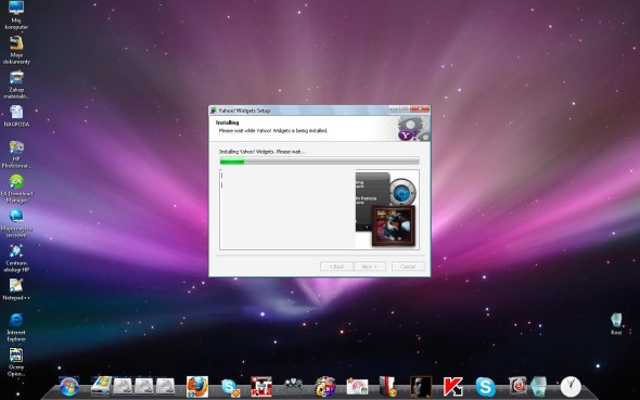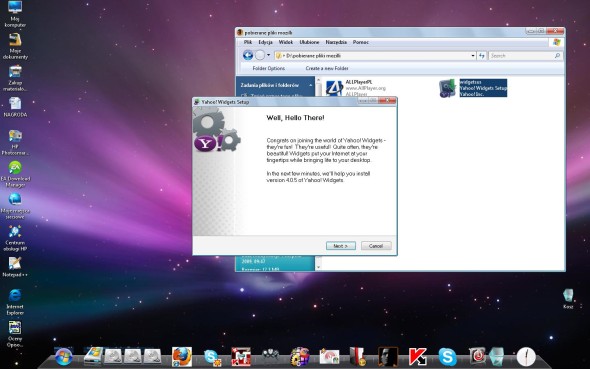 Gdy instalacja się zakończy klikamy close z zaznaczoną opcją Launch Yahoo! widgets.