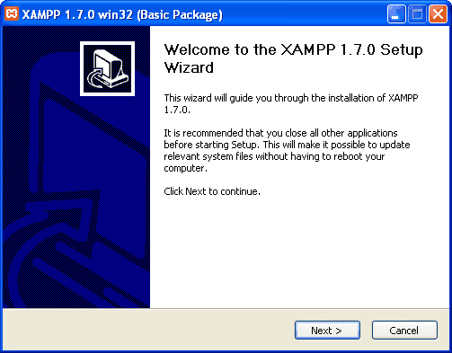 Aby uruchomić instalację dwukrotnie klikamy Lewym Przyciskiem Myszki na pliku instalacyjnym xampp-win32-1.7.0-installer.exe.