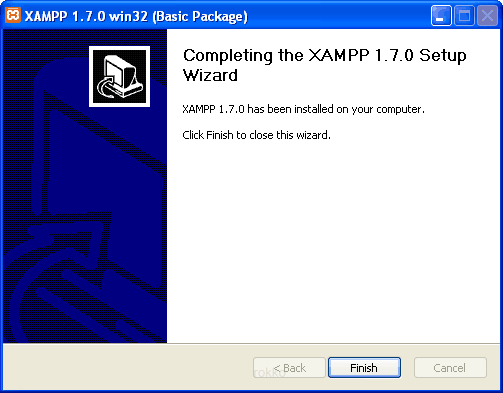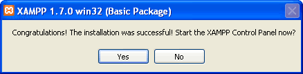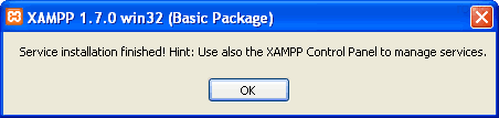 e) Jeżeli instalacja zakończy się pomyślnie ujrzymy poniższe okna. Aby sfinalizować operację instalacji, w pierwszym z nich klikamy Finish. Rozpocznie się proces uruchamiania usług Apache oraz MySQL, możemy ujrzeć komunikaty związane z systemową zaporą, które poproszą nas o odblokowanie danego programu/usługi, klikamy przycisk Odblokuj. W kolejnym oknie dialogowym klikamy OK, a w ostatnim "Congratulations! The installation was successfull! Start the XAMPP Control Panel now?" zdecydujemy czy chcemy uruchomić panel kontrolny XAMPP-a czy też nie, oczywiście zgadzamy się na tą propozycję, klikamy Yes. W ten oto sposób zainstalowaliśmy serwer XAMPP.