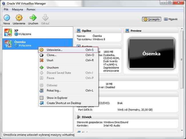Ukaże nam się podsumowanie maszyny wirtualnej. Jeśli wszystko się zgadza klikamy