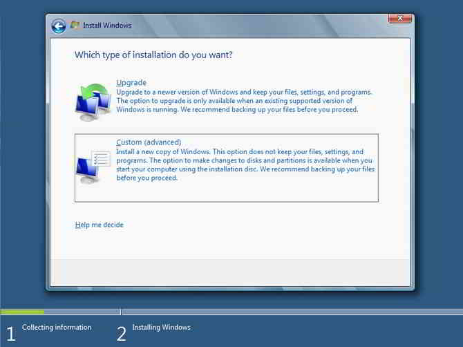 Custom: instalacja od początku na partycji, którą wybieramy: