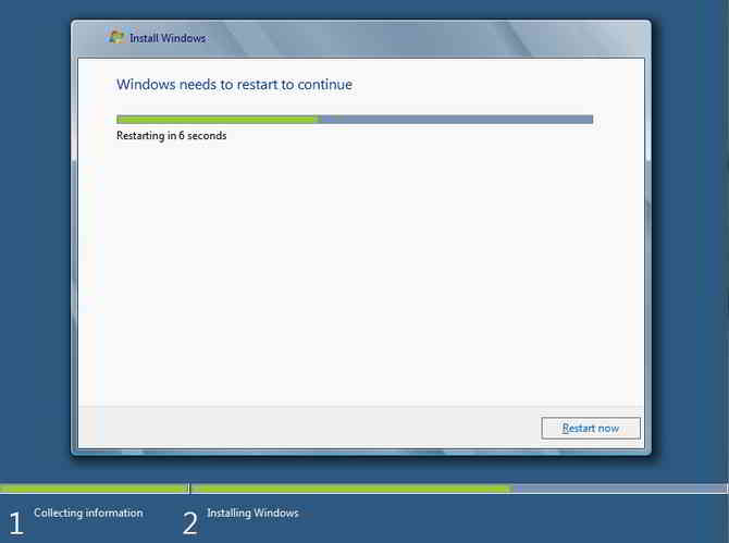 Instalator zacznie kopiować potrzebne pliki na dysk, po zakończeniu wyświetli się okno informujące o ponownym uruchomieniu komputera(w tym przypadku – maszyny):