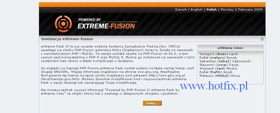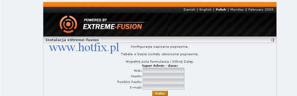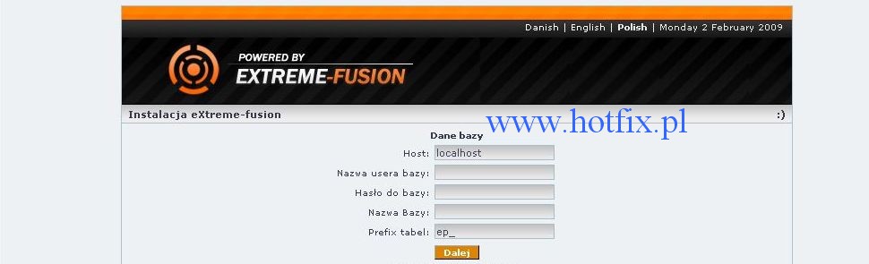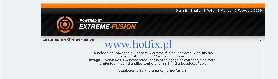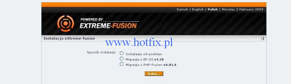 1. Wchodzimy na Naszą stronę i powinien pojawić się kreator instalacji eXtreme-fusion