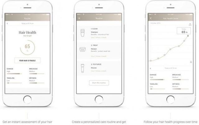 Zebrane dane przesyłane są do smartfona gdzie dodatkowo aplikacja zbiera informacje o warunkach pogodowych i wydaje użytkownikowi zalecenia jak lepiej dbać o włosy.