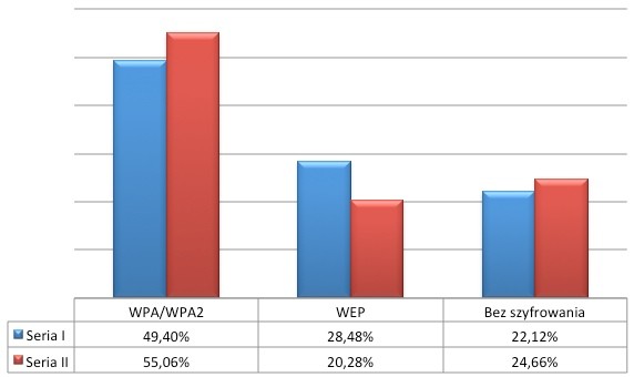 W większości badanych wcześniej miejsc, teraz odnotowano wzrost liczby sieci zabezpieczonych poprzez system WPA lub WPA2. Wzrostem takich sieci może się pochwalić Poznań i Lublin (po 15%) oraz Toruń (12%). Niestety w wielu miastach nadal spora liczba sieci pozostaje niezabezpieczona. Najwięcej sieci otwartych przybyło w Katowicach (10%) oraz Warszawie (12%), a przecież skonfigurowanie zabezpieczeń zajmuje tylko chwilę.