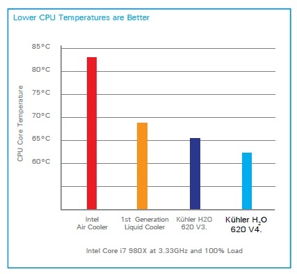 Niewielkie wymiary obu systemów chłodzeń: 27 mm w przypadku KÜHLER 620 lub 29 mm – KÜHLER 920, umożliwiają zastosowanie ich w niskoprofilowych obudowach. Poprawiona została konstrukcja bloku wodnego z miedzianą podstawką, by jeszcze lepiej przylegała do powierzchni procesora. Coolery są proste w instalacji, elastyczne gumowe wężyki odprowadzające ciecz pozwalają na umieszczenie w dowolnym położeniu radiatora.