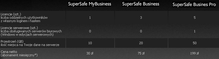 Firma TotalSafe będąca dostawcą profesjonalnych rozwiązań do backupu danych online przedstawia usługę pod nazwą SuperSafe. W ramach SuperSafe zarówno prywatni użytkownicy, jak i przedsiębiorstwa mogą backupować swoje dane na jedną z najnowocześniejszych i najbezpieczniejszych serwerowni w Polsce - Data Center Beyond w Poznaniu. Jedną z najciekawszych możliwości usługi SuperSafe jest "Uruchom i zapomnij" polegająca na w pełni automatycznym backupie danych, który można przeprowadzić jednorazowo lub cyklicznie - w z góry zaplanowany dzień o wyznaczonej wcześniej godzinie. "Obsługa naszej przestrzeni dyskowej online odbywa się niezwykle intuicyjnie za pośrednictwem aplikacji, którą uprzednio należy zainstalować. Odczytanie oraz przywrócenie danych jest możliwe jedynie przez uprawnionego użytkownika posiadającego indywidualny klucz dostępu" - mówi Tomasz Kuik, prezes firmy TotalSafe.