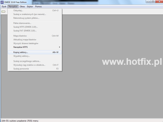 4.W górnym menu wybieramy Narzędzia a następnie Kopiuj sektory.