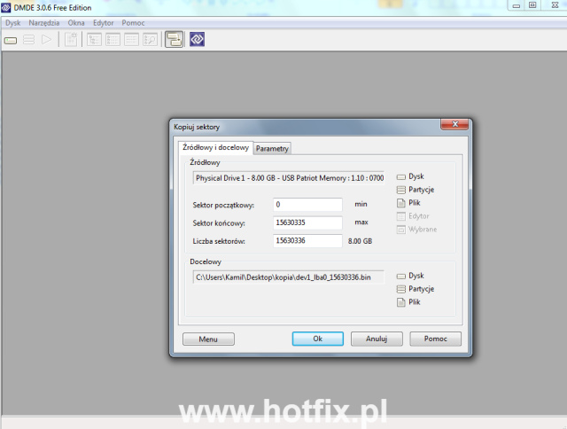 Witam w poradniku przedstawie jak wykonać kopie posektorową przy uzyciu programu DMDE. Kopie takową wykonujęmy gdy chcemy mieć backup naszych plików , ewentualnie gdy chcemy odzyskać nasze pliki z uszkodzonego np. pendrive.