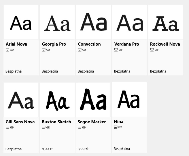 Użytkownicy Windows 10, którzy chcą w łatwy sposób pobrać nowe czcionki mogą to zrobić za pośrednictwem sklepu Microsoftu, niestety nie wszystkie są oferowane za darmo.