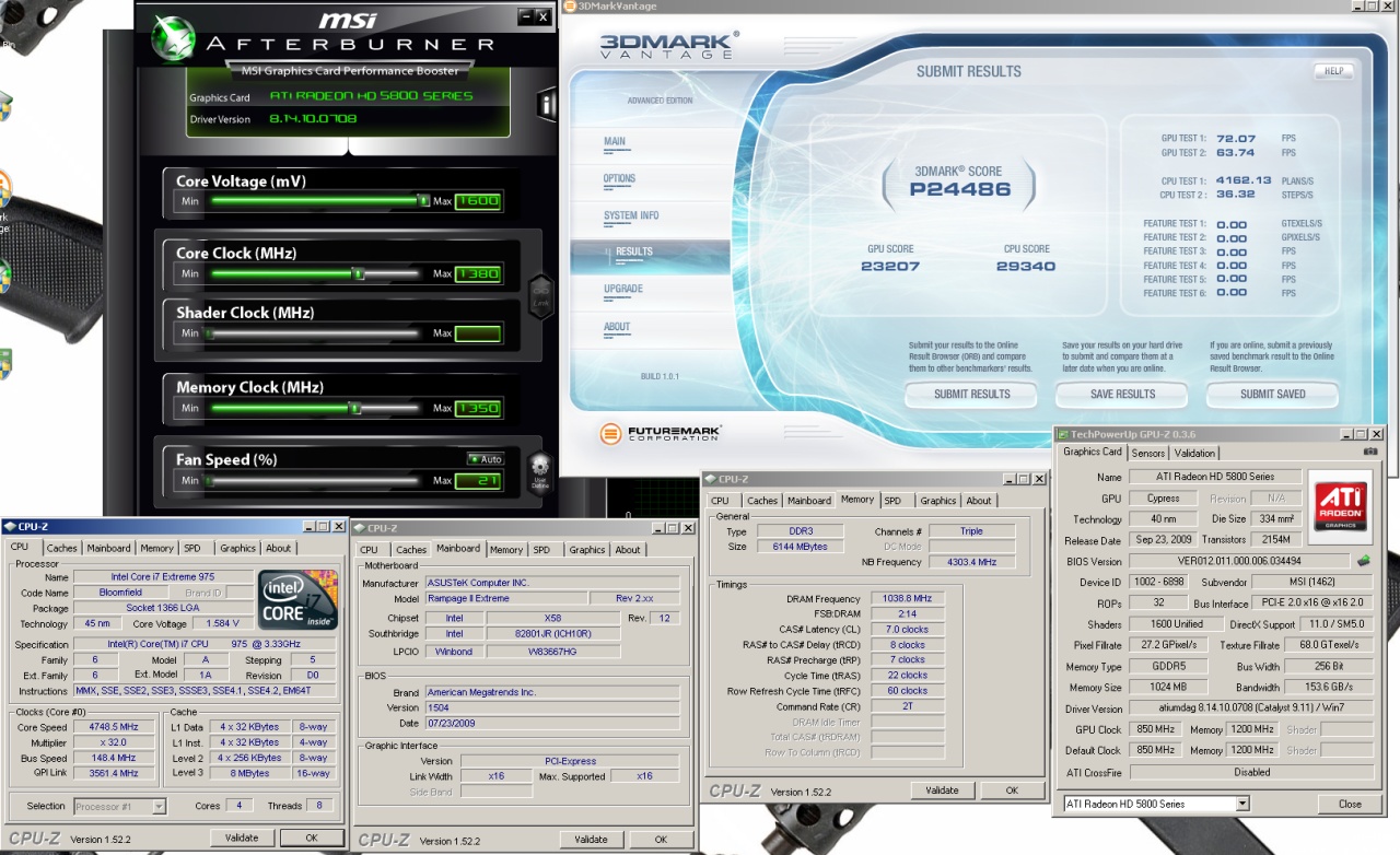 ATI Catalyst 9.11, płycie głównej ASUS Rampage II Extreme i pamięciach RAM OCZ Blades 2000MHz CL7.