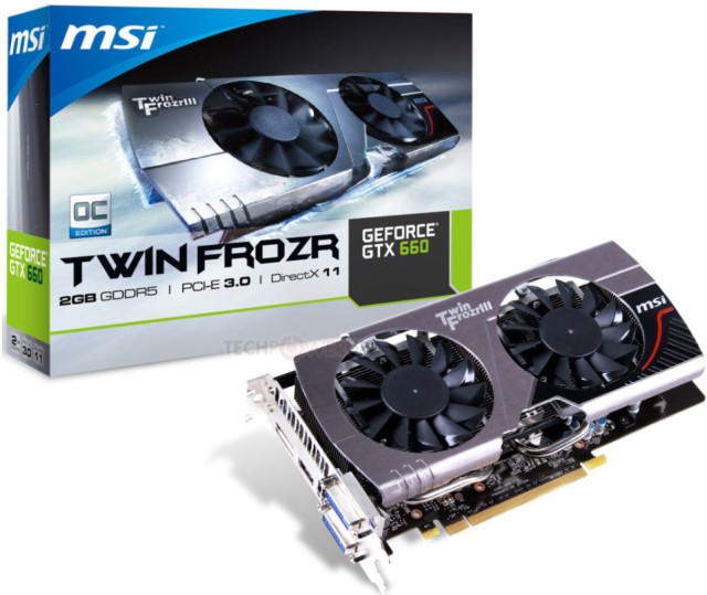 Kolejną ciekawą propozycją jest MSI GeForce GTX 660 ze znanym nam już układem chłodzenia TwinFrozr III. Także i tutaj wydajne chłodzenie dwuwentylatorowe pozwoliło na podkręcenie karty. Za wersję OC w cenie 260 dolarów otrzymujemy taktowanie 1033/1098/6008 MHz.