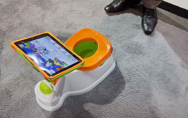 Kolejnym sprzętem jest akcesorium do iPada w postaci nocnika dla dzieci z uchwytem na urządzenie Apple. Producenci zapewne myśleli o skłonieniu dziecka, by posiedziało chwilę na nocniku a zarazem pograło sobie na iPadzie. Akcesorium dla nowoczesnych dzieci dostępne będzie w sklepach na wiosnę.