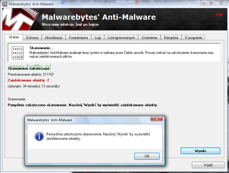 Rozpocznie się skanowanie, a po jego zakończeniu otrzymamy stosowny komunikat.