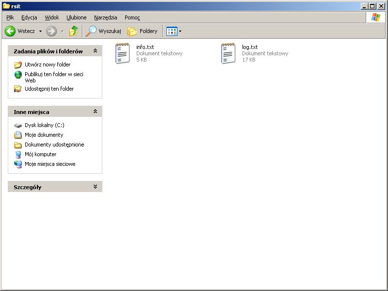 Dajemy ten notatnik na -> FORUM w celu jego dalszej analizy. Na partycji "C:\" będzie folder o nazwie "rsit", jak w niego wejdziemy to zobaczymy dwa pliki tekstowe, jeden jak mówiłem poprzednio log.txt i info.txt.
