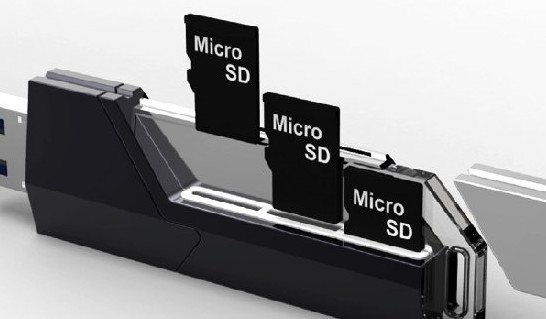 Wystarczy przesunąć obudowę, a oczom ukażą się trzy gniazda na zwykłe pamięci micro SD. Trzeba tylko wymienić jedną z kart lub dołożyć nową i automatycznie pojemność dysku się zwiększy.