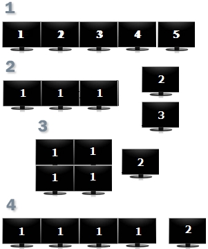 Możliwe konfiguracje trybu Multi-Eyefinity z kartą PowerColor HD5770 Eyefinity 5: