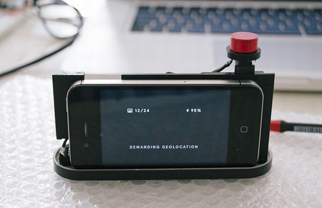 Urządzenie o nazwie Camera Restricta oparte zostało na mikrokontrolerze ATTiny85, telefonie iPhone, czujniku GPS, migawce i antenie. Wszystko to zapakowano w korpus wydrukowany na drukarce 3D.