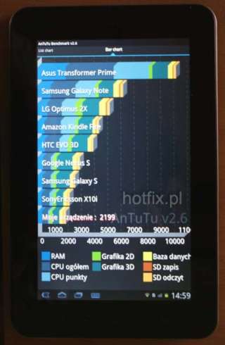 Uzyskany wynik 2200 punktów to półka smartfonów i podobnych tabletów. Już same parametry wskazywały, że tablet demonem szybkości nie będzie, ale wykorzystywany do internetu czy gier sprawdza się dobrze. Zainstalowany system operacyjny nie obciąża go mocno dzięki czemu ma jeszcze zasoby na szybkie działanie aplikacji.
