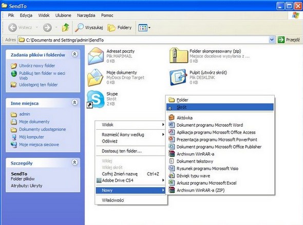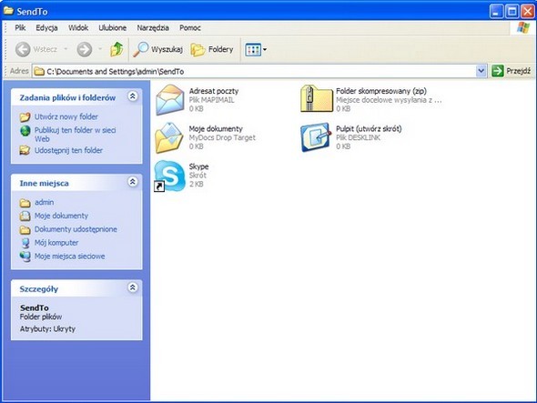 2. po zatwierdzeniu polecenia naszym oczom ukaże się folder o nazwie SendTo, w którym znajdują się elementy listy wyślij do: