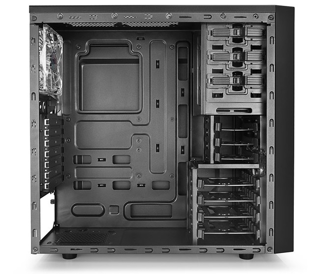 Tesseract SW pozwala na montaż dwóch napędów 5.25 cala, czterech 3.5 cala oraz trzech 2.5 cala. Wszystkie kieszenie zostały wyposażone w system montażu bez śrubkowego.