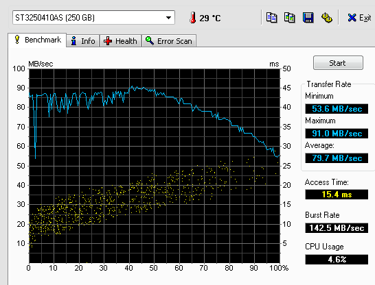 Aby mieć pewność że program wskazuje poprawnie tryb pracy dysku należy wykonać benchmark: