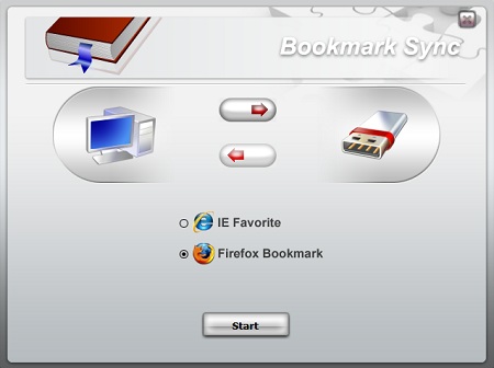 Pracując na kilku komputerach w łatwy sposób możemy ulubione strony internetowe synchronizować pomiędzy komputerami. Wybierając opcję Bookmark Sync możemy stworzyć kopię lub synchronizować zakładki z Internet Explorera lub Mozilli Firefox.
