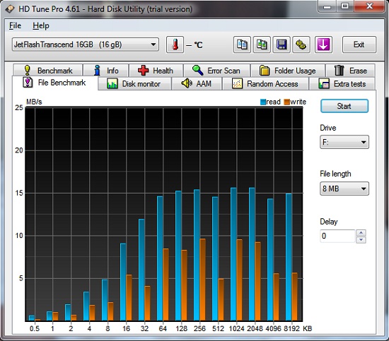 Dla plików o wielkości powyżej 4 MB, a mniejszych od 16 MB można nawet osiągać transfery wyższe od 15 MB/s. Ogólnie patrząc się na to co oferuje ten model, to można śmiało powiedzieć, że to wystarczy. To nie jest w końcu torpeda. Jeśli ktoś szuka czegoś więcej, to po prostu nie ten model. Jest to z pewnością model klasy wyższej, ale nie najwyższej (jeśli chodzi o wydajność).