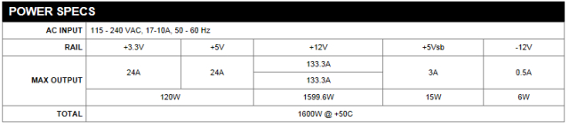 Jest 1600 watowy model z efektywnością rzędu 94 procent co sprawia, że posiada on certyfikat 80 Plus Titanium.