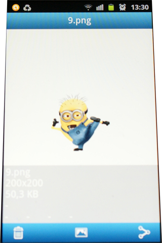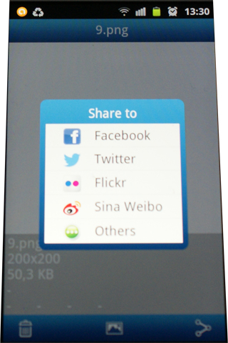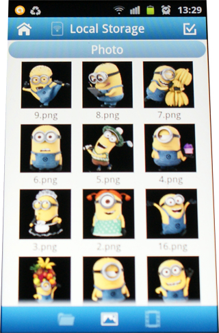 Pierwsza opcja służy do przeglądania zawartości karty, aplikacja dzieli multimedia znajdujące się na karcie na zdjęcia oraz filmy w celu szybszego zarządzania zawartością. Zawartość katalogu wyświetlana jest w postaci miniatur które można powiększyć na cały ekran. Dodatkowo w pełnym podglądzie użytkownik może ściągnąć pojedyncze zdjęcie, uzyskać informacje o pliku: nazwę, wielkość obrazu, przysłonę, czas naświetlania, czułość ISO lub udostępnić go w sieci. Aplikacja współpracuje z Facebookiem, Flickr, Twitterem czy Sina Weibo. Dodatkowo zdjęcie można przesłać e-mailem poprzez aplikację na Androida.
