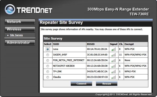 Urządzenie nie posiada wielu opcji konfiguracji, ponieważ jego zadanie jest po prostu rozszerzenie sygnału istniejącej sieci Wi-Fi. Konfigurację można przeprowadzić tradycyjnie dwoma sposobami: kreatorem lub ręcznie zmieniając ustawienia w zakładkach.