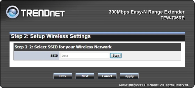 W trzecim kroku należy wykonać skanowanie dostępnych sieci bezprzewodowych a następnie wybrać sieć, którą chce się rozszerzyć. Po zatwierdzeniu poprzedniego kroku pojawia się okno gdzie należy wpisać hasło dostępowe do routera oraz określić szyfrowanie z jakiego on korzysta.