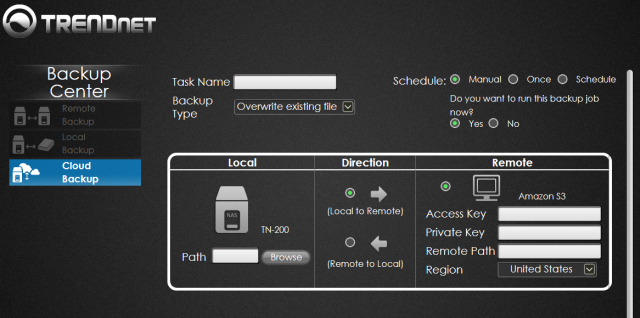 Na koniec jeszcze jedna ciekawa opcja, a mianowicie backupowanie. Tutaj TRENDnet pozwala na korzystanie z usług w chmurze.